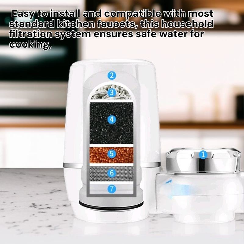 ● Enjoy pure and healthy drinking water at home with our advanced kitchen faucet water purifier, designed to filter out harmful substances and impurities effectively. ● Easy to install and compatible with most standard kitchen faucets, this household filtration system ensures safe water for cooking, drinking, and cleaning. ● Save money and reduce plastic waste by switching to a convenient, long-lasting faucet filter—no need for bottled water anymore. ● The high-efficiency filter provides a fast flow rate without compromising water quality, making it ideal for busy family kitchens. ● Durable and compact design seamlessly blends into your kitchen decor while providing reliable filtration performance for your family's daily needs.